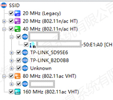 AP帶寬設(shè)置可以影響無線的傳輸速率,但是如果帶寬設(shè)置過大也會導致信號的干擾,通過勘測結(jié)果發(fā)現(xiàn),現(xiàn)場的AP在2.4G下設(shè)置的都是20MHz比較理想,但是在5G頻段下,AP的帶寬基本都設(shè)置在了80MHz。