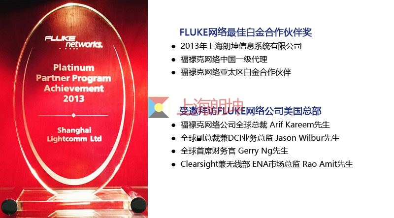 2013年上海朗坤信息系統有限公司,在綜合多方資源并在華東區(qū)團隊支持與配合下,順利完成福祿克網絡公司中國華東區(qū)業(yè)績任務。