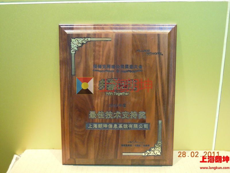 近日,F(xiàn)luke Networks(福祿克網(wǎng)絡)在三亞舉行全國渠道大會,會上福祿克網(wǎng)絡為上海朗坤頒發(fā)2010年度“最佳合作伙伴獎”和“最佳技術(shù)支持獎”。