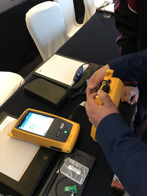現(xiàn)場(chǎng)交流M12測(cè)試、光纖v型槽測(cè)試、光纖一級(jí)測(cè)試、故障箱測(cè)試、光纖端面檢測(cè),客戶們帶著問(wèn)題有備而來(lái)。上海朗坤的技術(shù)銷售一一解答。