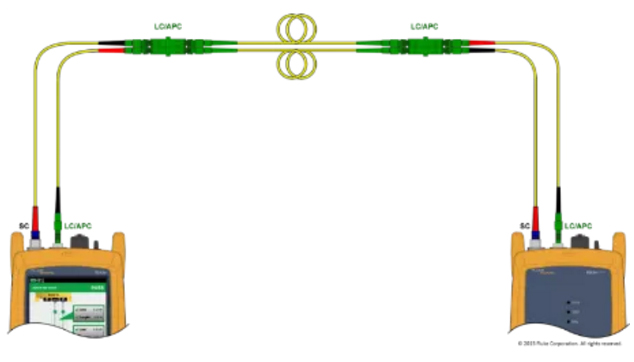 即使將APC型連接器連接至輸入端時(shí)不會(huì)發(fā)生任何損壞,但您會(huì)收到一條關(guān)于接收到的功率過低的警告。測(cè)試APC系統(tǒng)時(shí),您需要利用兩根混合UPC-APC線和兩根APC-APC線進(jìn)行連接。對(duì)于2級(jí)OTDR測(cè)試,由于使用APC連接器時(shí)的反射被包層吸收并且回波損耗非常小,因此福祿克網(wǎng)絡(luò)的OptiFiber? Pro(實(shí)際上所有的OTDR)將APC連接顯示為如熔接頭一樣的非反射損耗。